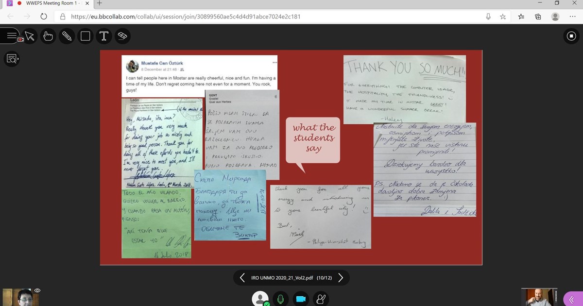 Referent za međunarodnu saradnju Univerziteta „Džemal Bijedić“ u Mostaru, Mirsada Behram je u srijedu, 25.11. u okviru WWEPS2020 predstavila studentima Univerziteta u Ljeidi rad Kancelarije za međunarodnu saradnju u polju razmjene studenata.