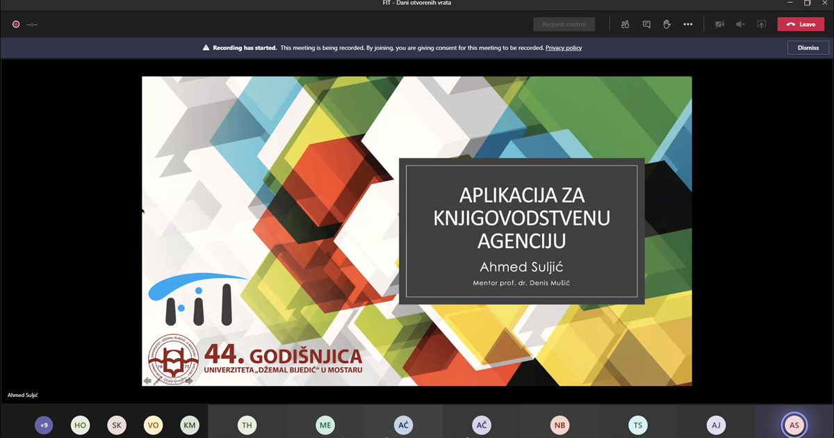 Danas je online putem Microsoft Teams platforme održana prezentacija studentskih ...
