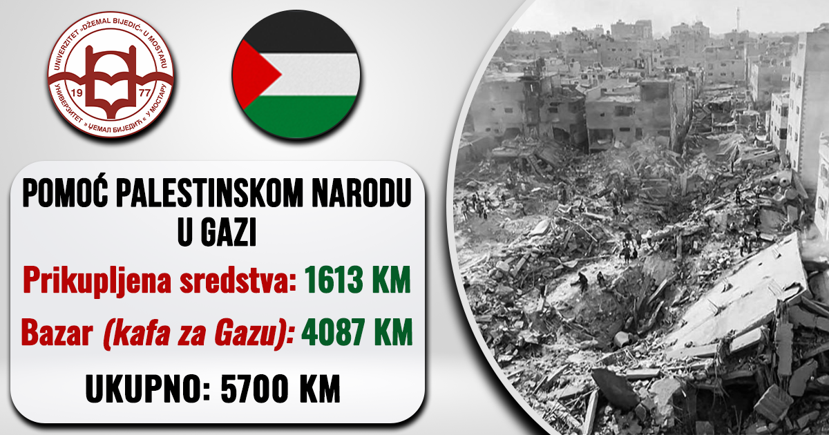 Zaposlenici Univerziteta su donirali 1613 konvertibilnih maraka, dok su studenti Asocijacije studenata Fakulteta informacijskih tehnologija Univerziteta „Džemal Bijedić“ u Mostaru priredili humanitarni bazar „Kafa za Gazu“ i uspjeli prikupiti 4087.15 konvertibilnih maraka.