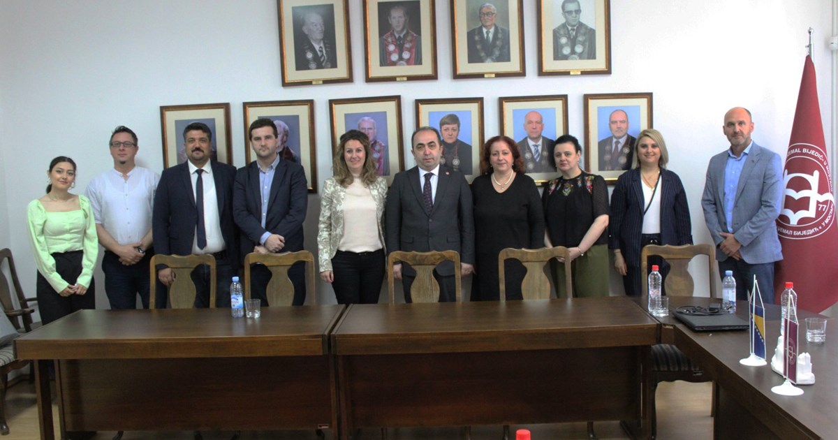 U četvrtak, 19.5.2022. godine, rektorica Univerziteta „Džemal Bijedić“ u Mostaru prof. dr. Alena Huseinbegović sa saradnicima, prof. dr. Rijadom Novakovićem, prorektorom za međunarodnu i međuuniverzitetsku saradnju i prof. dr. Azrom Špago, prorektoricom za naučno-nastavna pitanja, generalnim sekretarom Alimom Abazovićem i prof. dr. Almirom Marićem, u Rektoratu Univerziteta je ugostila prof. dr. Yüksela Özgena, direktora Centra za istraživanje “Ataturk“ Odjeljenja za kulturu, jezik i historiju Turskoga lingvističkog društva sa delegacijom.